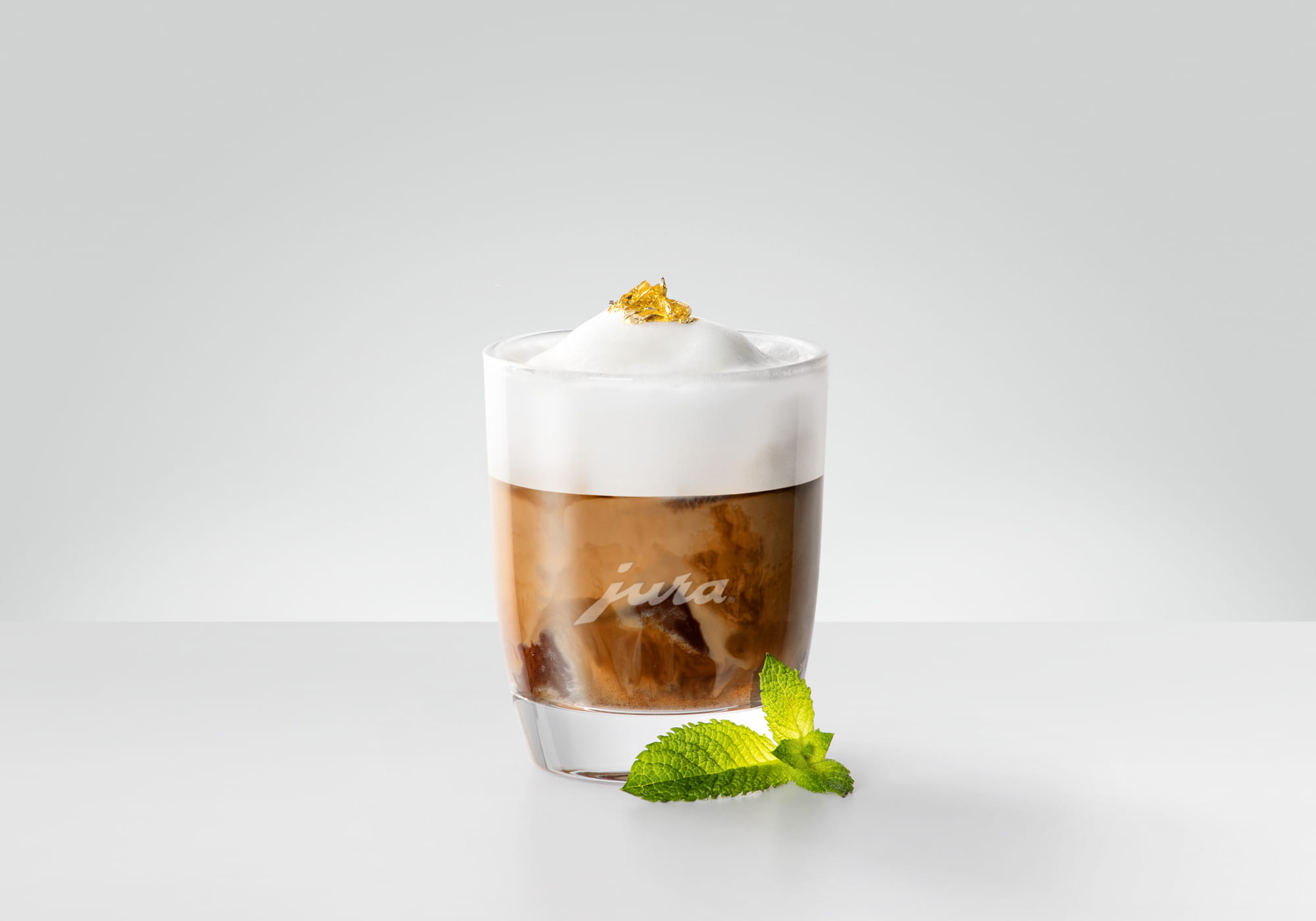 在奶沫上加几片薄荷叶进行装饰